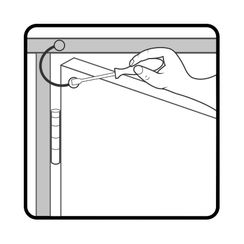 The long door stop at the handle side must be refitted and fastened only by 2 screw eyes 16 centimetres from the top and bottom. Remove or cut off the nails. Discard the overhead strip. Do not remove the hinge side door stop.